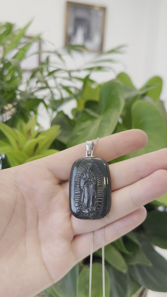 Baikalla Jewelry Gold Jade Pendant Pendant Only / White Gold Copy of Copy of Baikalla™ 14K Yellow Gold Genuine Nephrite Black Jade Mother Mary Pendant Necklace