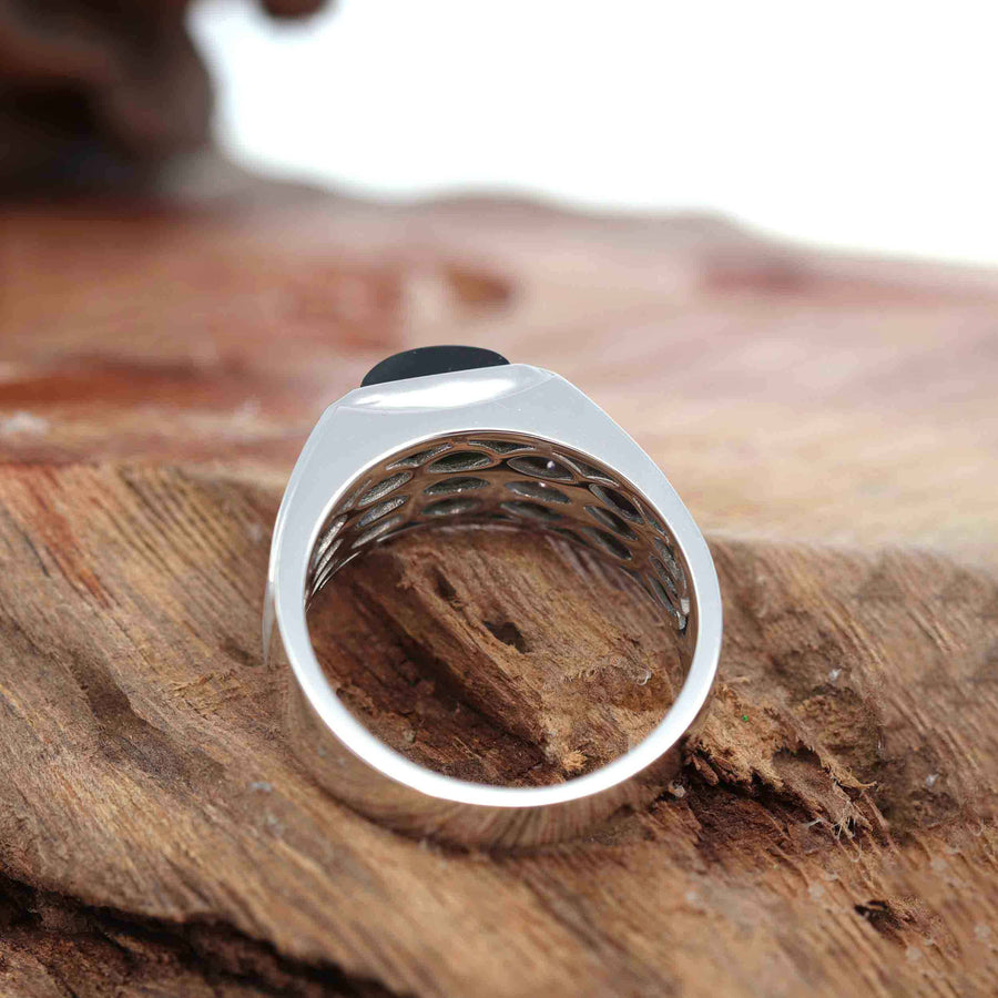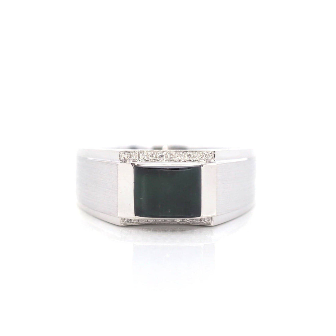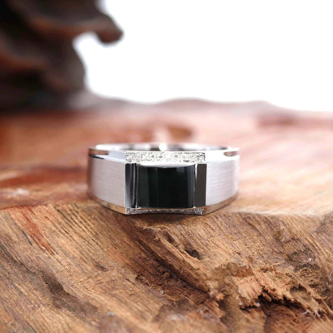 * DESIGN CONCEPT--- This ring is made with high-quality genuine Burmese black jadeite jade. The black jadeite jade actually shows the emerald green color under the light. Bezel set emerald cut stone with unique side stone design, truly a mesmerizing combination. Black jade is relatively a rare stone to be found in rings, they sure are beautiful. The design was inspired by the simplistic designs of a bar ring. Every detail and angle is exquisite and graceful. The stone represents luck, happiness, and contentment. Fine polish. Some people like to be an engagement ring. It's a very unique gift for you and your love.