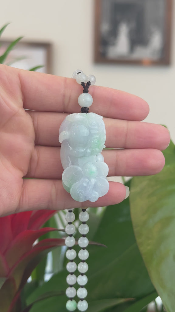 Baikalla™ Pi Xiu Genuine Burmese Lavender Green Jadeite Jade PiXiu Pendant Necklace (FengShui Lucky)