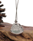 Baikalla High-end 14K White Gold Genuine Burmese Ice Jadeite Jade Buddha Pendant with Diamonds High Jewelry