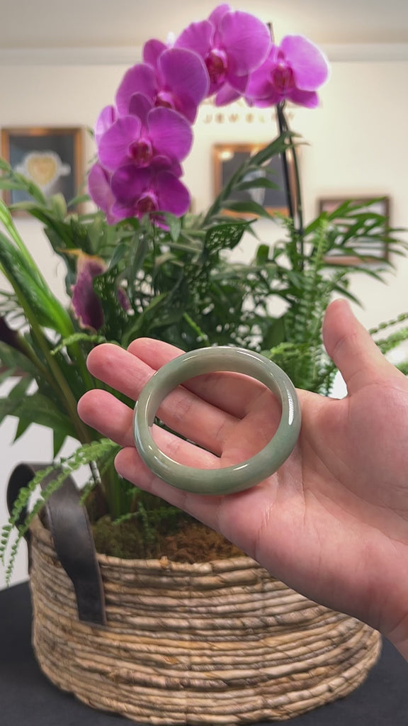 Designed in a half-round, comfort-fit style, the bangle is flat on the inside for a comfortable feel, perfect for everyday wear. The width of this bangle is slightly wider than standard, creating a bolder look. Known for its durability, jadeite is also cherished as a symbol of good luck, protection, and harmony. Whether as a gift for yourself or a loved one, this jade bangle is a meaningful treasure that combines natural beauty, lasting craftsmanship, and exceptional value to cherish for years to come.