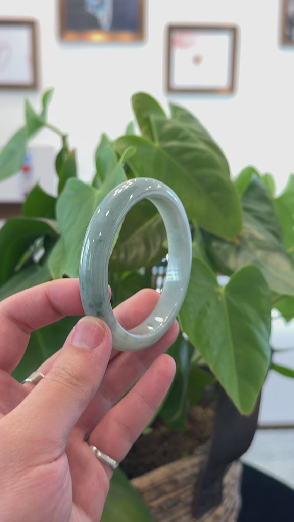 * DETAILS--- Genuine Burmese Jadeite Jade Bangle Bracelet. This bangle is made with high-quality genuine Burmese Ice blue-green Jadeite jade. The jade texture is so smooth and translucent with some natural cloudy patches. The blue-green color and fine texture is truly a mesmerizing combination. The Classic half-round style bangle looks completely beautiful with blue-green. It's a very unique bangle for yourself or your love.