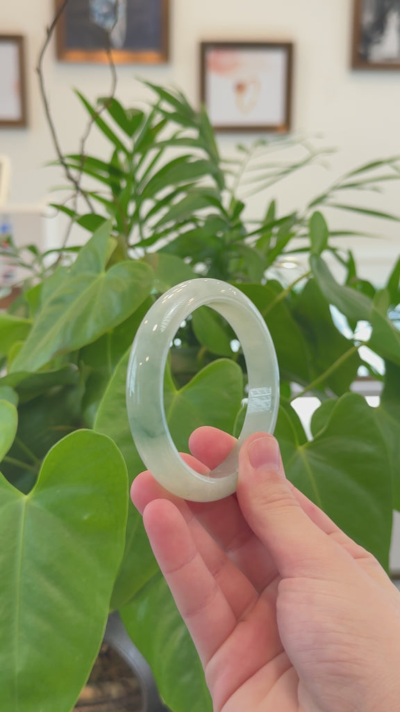 * DETAILS--- This stunning high-end bangle is expertly crafted from premium Burmese Jadeite, featuring a mesmerizing blend of radiant icy hues. Its very smooth, ice-translucent texture and luminous clear-white tones with oil green, embody timeless elegance and cultural significance. Designed with a classic half-round comfort fit, this bracelet enhances the jade’s natural serenity with effortless sophistication. A rare and meaningful collectible, it makes a thoughtful and unique gift for yourself or someone truly special.