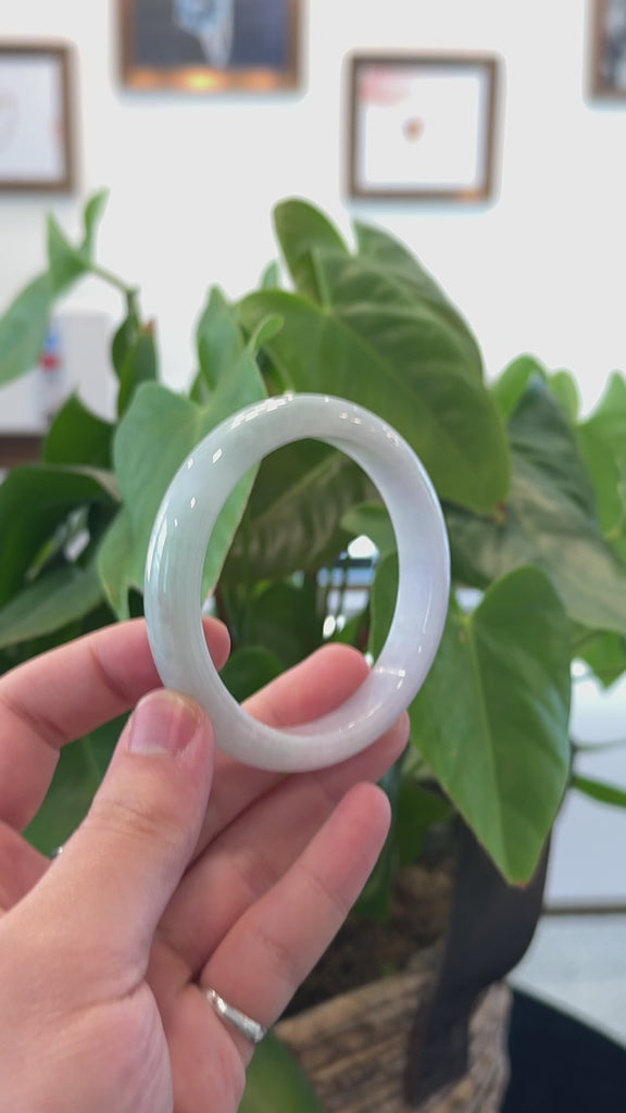 * DETAILS--- Genuine Burmese Jadeite Jade Bangle Bracelet. This bangle is made with high-quality genuine Burmese lavender-green Jadeite jade, The jade texture is so smooth and translucent, with little natural line. The Classic half-round style bangle looks completely beautiful with light lavender-green. It is a larger size bangle. It's a very unique bangle for yourself or your love.