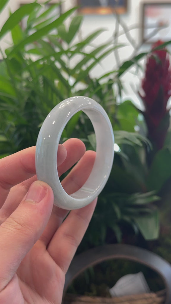 * DETAILS--- This exquisite bangle is crafted from premium Burmese jadeite in a light lavender hue. With its smooth, translucent texture and captivating color, it radiates a timeless elegance and cultural heritage. The classic half-round comfort design enhances the jade’s natural beauty with simplicity, making this bracelet a cherished addition to any jewelry collection. just has some clouds and inclusion, Known to symbolize protection and strength, jade bangles hold deep meaning, making this piece a thoughtful, one-of-a-kind gift for yourself or someone truly special.
