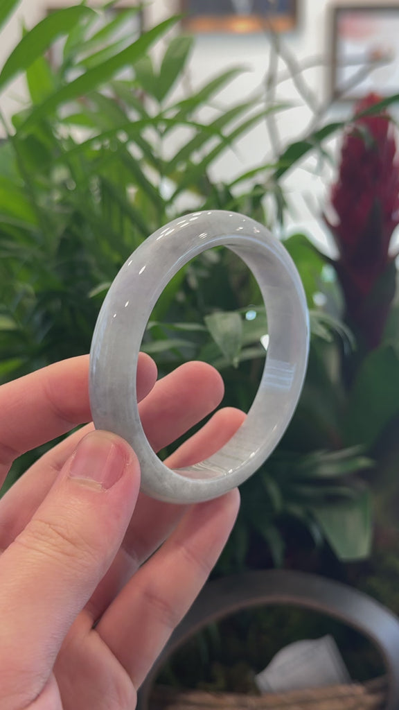 * DETAILS--- This exquisite bangle is crafted from premium Burmese jadeite in a light lavender hue. With its smooth, translucent texture and captivating color, it radiates a timeless elegance and cultural heritage. The classic half-round comfort design enhances the jade’s natural beauty with simplicity, making this bracelet a cherished addition to any jewelry collection. just has some clouds and inclusion, Known to symbolize protection and strength, jade bangles hold deep meaning, making this piece a thoughtful, one-of-a-kind gift for yourself or someone truly special.