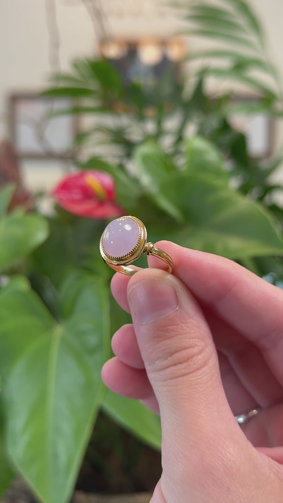 18k Yellow Gold Natural Translucent Oval Pink Lavender Burmese Jadeite Jade Engagement Ring