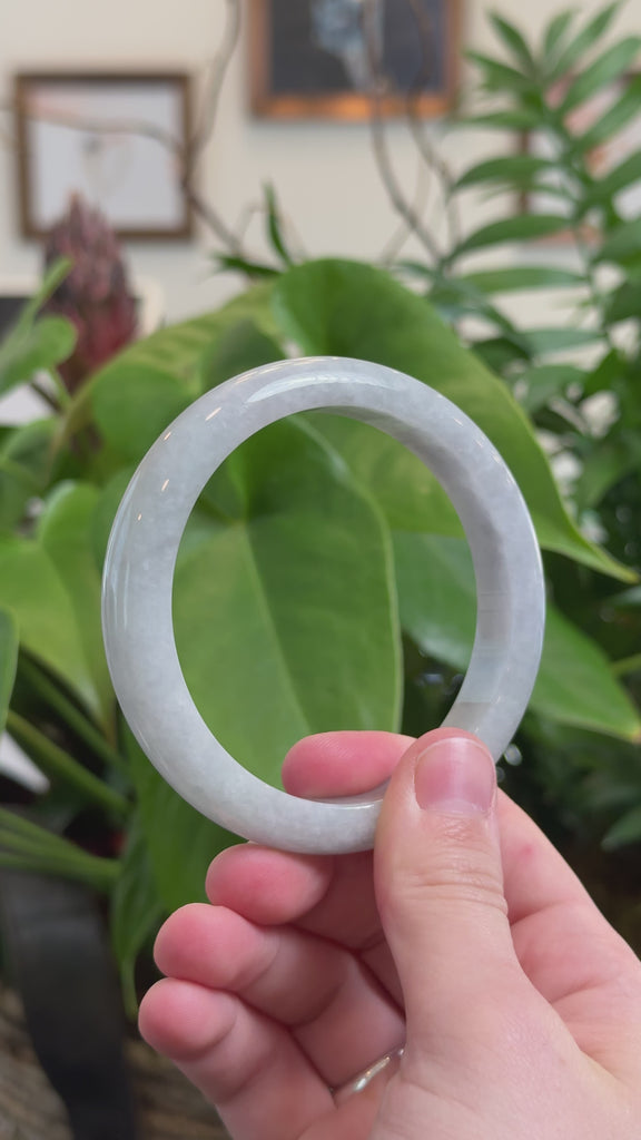 * DETAILS--This bangle is made from high-quality genuine Burmese Jadeite jade. It has a very smooth & translucent texture. The classic half-round design offers comfort and style. Jadeite jade is one of the toughest gemstones, and it's believed to bring good luck. This bangle makes a special gift for you or a loved one.