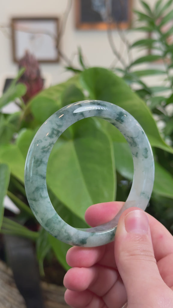 * DETAILS--- This beautiful bangle is made from premium Burmese Jadeite jade, featuring a icy smooth texture and a deep blue-green colors. Which is a bit more rare for larger sizes. Its classic half-round design highlights its natural beauty and ensures a comfortable fit. A timeless piece, perfect as a thoughtful gift for yourself or someone truly special.