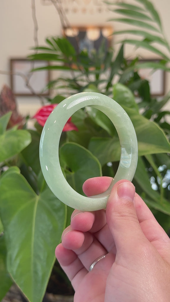 Baikalla Icy Light Green Jadeite Jade Bangle Bracelet (57.8 mm) #T955