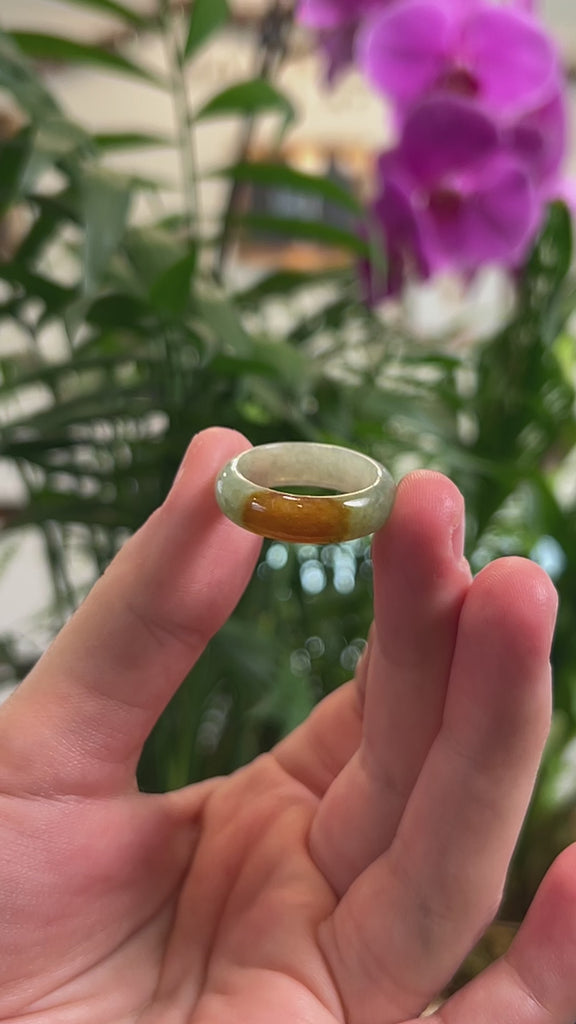 Baikalla Icy Oil-Green & Brown Burmese Jadeite Jade Traditional Ring #9.25