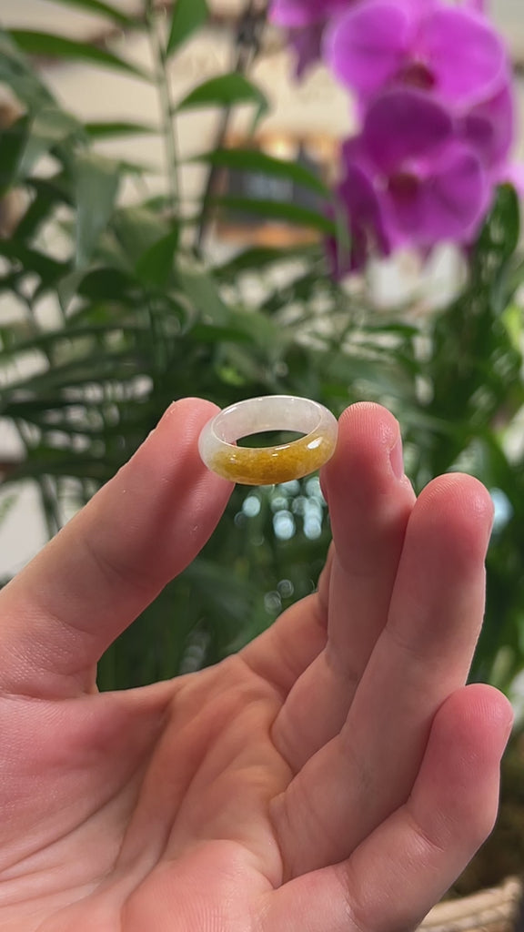 Baikalla Icy White & Yellow Burmese Jadeite Jade Traditional Ring #4.25