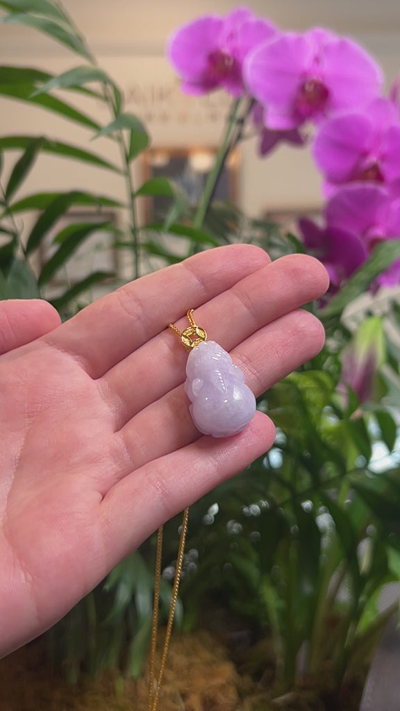 Baikalla Lavender "PiXiu" (Fortune Beast) Jadeite Jade Pendant W/ 18K Yellow Gold Bail