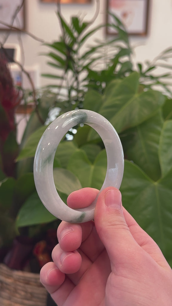 * DETAILS--- This beautiful bangle is made from premium Burmese Jadeite jade, featuring a smooth texture and a lovely blue-green color. Its classic half-round design highlights its natural beauty and ensures a comfortable fit. A timeless piece, perfect as a thoughtful gift for yourself or someone truly special.