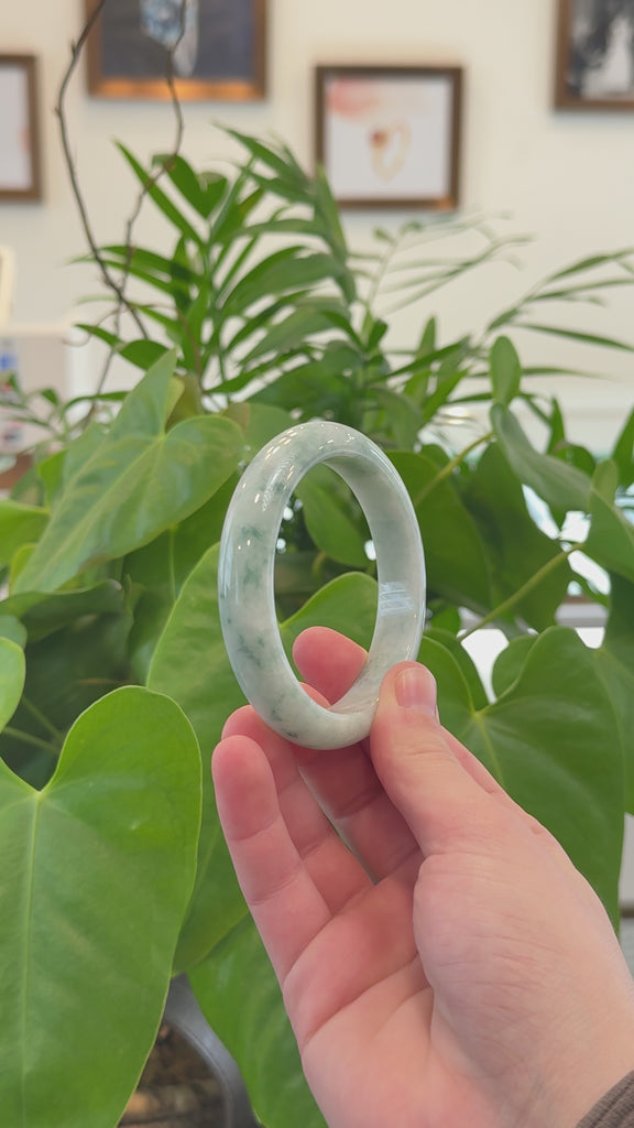 * DETAILS--- This beautiful bangle is made from premium Burmese Jadeite jade, featuring a smooth texture and a lovely blue-green color. Its classic half-round design highlights its natural beauty and ensures a comfortable fit. Just has some natural lines and clouds, A timeless piece, perfect as a thoughtful gift for yourself or someone truly special.