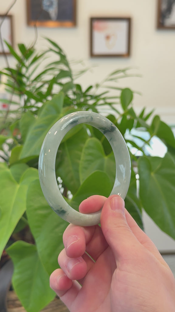 * DETAILS--- This beautiful bangle is made from premium Burmese Jadeite jade, featuring a smooth texture and a lovely blue-green color. Its classic half-round design highlights its natural beauty and ensures a comfortable fit. A timeless piece, perfect as a thoughtful gift for yourself or someone truly special.