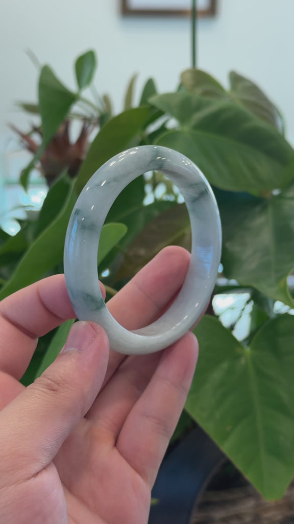 * DETAILS--- Genuine Burmese Jadeite Jade Bangle Bracelet. This bangle is made with fine genuine Burmese Ice blue green Jadeite jade. The jade texture fine and smooth. With very minimal cloudy spots. The bangle has some very beautiful blue green color inside. The blue green color and ice texture, truly a mesmerizing combination. The Classic half round style bracelet. This bangle is a small size.