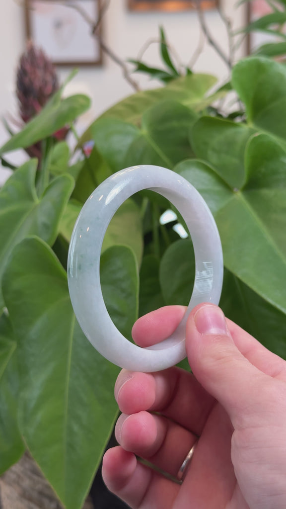 * DETAILS---This beautiful jade bangle is made from fine Burmese jadeite with a soft mix of light lavender and green. It has a smooth texture and a timeless, elegant look. The classic half-round shape is comfortable to wear and highlights the natural beauty of the jade. this bangle is a meaningful gift — perfect for yourself or someone special.