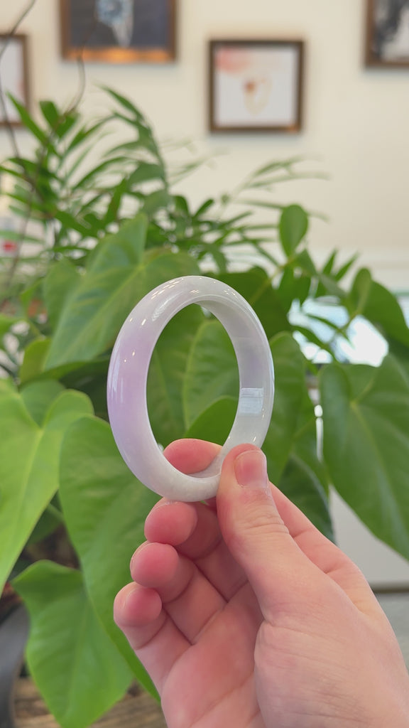 * DETAILS--- This beautiful bangle is made from premium Burmese Jadeite jade, featuring a smooth texture and a lovely light lavender color. Its classic half-round design highlights its natural beauty and ensures a comfortable fit. Just has some natural stone line, It's natural, colors are so nice, and very affordable price. A timeless piece, perfect as a thoughtful gift for yourself or someone truly special.