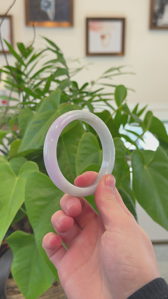 * DETAILS--- This beautiful bangle is made from premium Burmese Jadeite jade, featuring a smooth texture and a lovely light lavender color. Its classic half-round design highlights its natural beauty and ensures a comfortable fit. Just has some natural stone line, It's natural, colors are so nice, and very affordable price. A timeless piece, perfect as a thoughtful gift for yourself or someone truly special.
