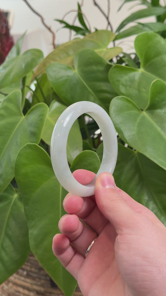 * DETAILS---This jade bangle is made from fine Burmese jadeite, featuring a soft light green tone. Its smooth finish gives it a clean, classic look. The half-round shape is comfortable and brings out the natural beauty of the jade. A graceful and meaningful piece — perfect as a gift or a special treat for yourself.