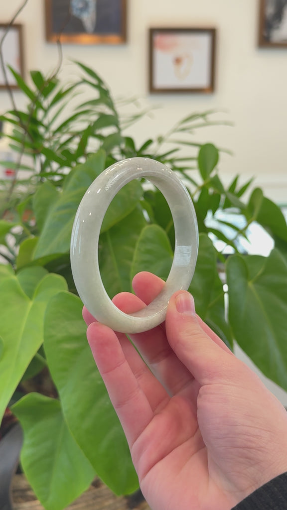 * DETAILS--- This beautiful bangle is made from premium Burmese Jadeite jade, featuring a smooth texture and a lovely light green colors. Its classic half-round design highlights its natural beauty and ensures a comfortable fit. Just has some natural clouds, it's a bigger size, very affordable. A timeless piece, perfect as a thoughtful gift for yourself or someone truly special.