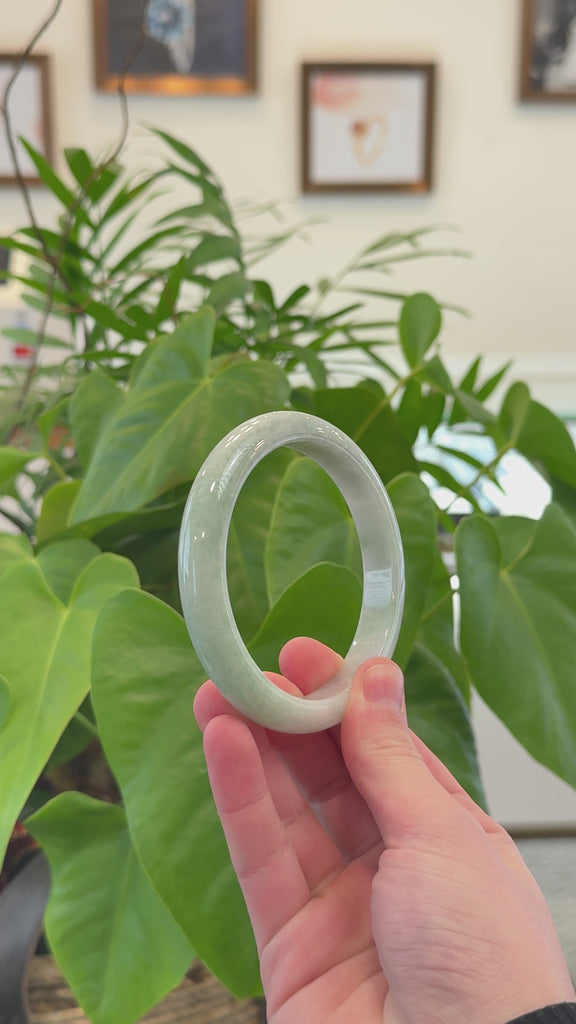 * DETAILS--- This beautiful bangle is made from premium Burmese Jadeite jade, featuring a smooth texture and a lovely light green colors. Its classic half-round design highlights its natural beauty and ensures a comfortable fit. Just has some natural clouds, it's a bigger size, very affordable. A timeless piece, perfect as a thoughtful gift for yourself or someone truly special.