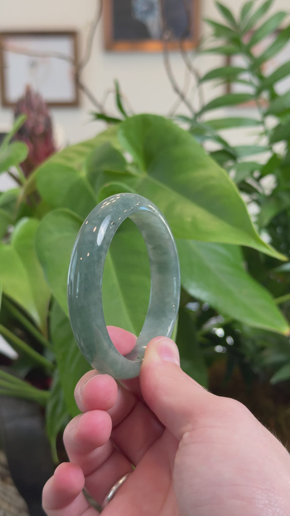 * DETAILS--- This beautiful bangle is made from premium Burmese Jadeite jade, featuring a smooth texture and a oil-green color. Its classic half-round design highlights its natural beauty and ensures a comfortable fit, A timeless piece, perfect as a thoughtful gift for yourself or someone truly special.