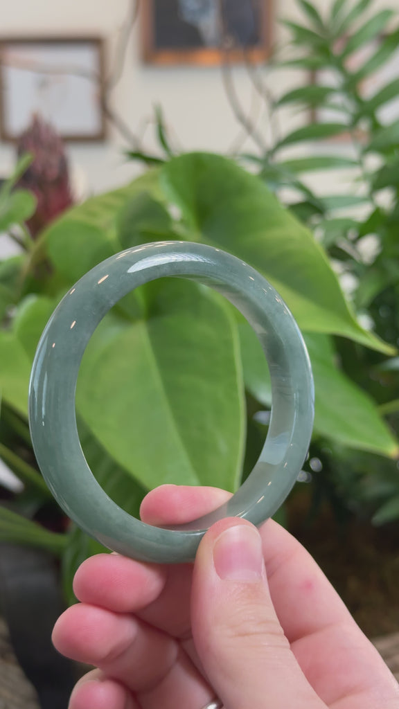 * DETAILS--- This beautiful bangle is made from premium Burmese Jadeite jade, featuring a smooth texture and a oil-green color. Its classic half-round design highlights its natural beauty and ensures a comfortable fit, A timeless piece, perfect as a thoughtful gift for yourself or someone truly special.
