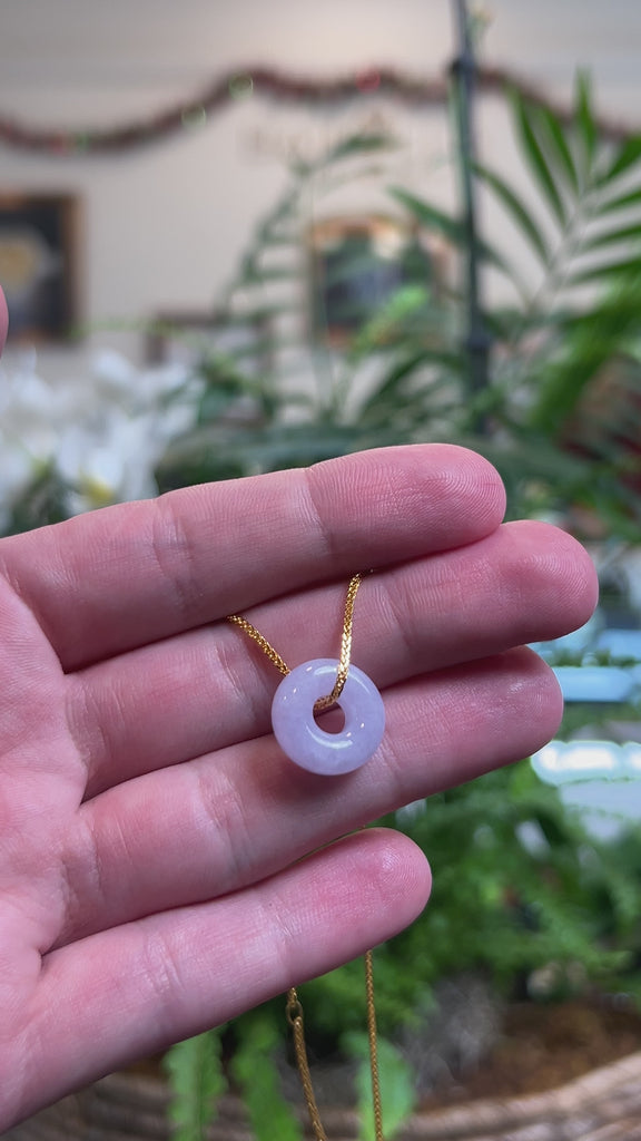 * Design Concept--- The Ping An Kou (Good Luck Button) is a Chinese symbol of peace, protection and well-being, believed to ward off negative energy and bring good fortune. This pendant is made with natural Burmese jadeite jade that features a lavender color throughout. Known for its durability, jadeite is also believed to bring good luck. Gifting one of these is like wishing the best of luck to your family or loved ones.