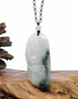 Design concept: This exquisite traditional dragon pendant is crafted from white-blue green jadeite, showcasing a smooth, transparent finish. Its unique design features a majestic dragon complemented by natural blue jade patches, adding a touch of charm and elegance. The jade dragon is a powerful symbol of good fortune and success, making it a beloved motif in art and jewelry. This pendant is a thoughtful and meaningful gift for yourself or someone special in your life.