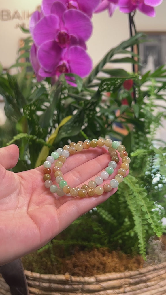 * DETAILS---This bracelet is made with fine quality, natural genuine Burmese jadeite jade beads in a mix of green, blue-green, yellow, and white colors (colors may vary, sent at random). The jades texture is so smooth and translucent. Known for its durability, jadeite is also believed to bring good luck. Whether as a gift for yourself or a loved one, this jade beaded bracelet is a meaningful piece.