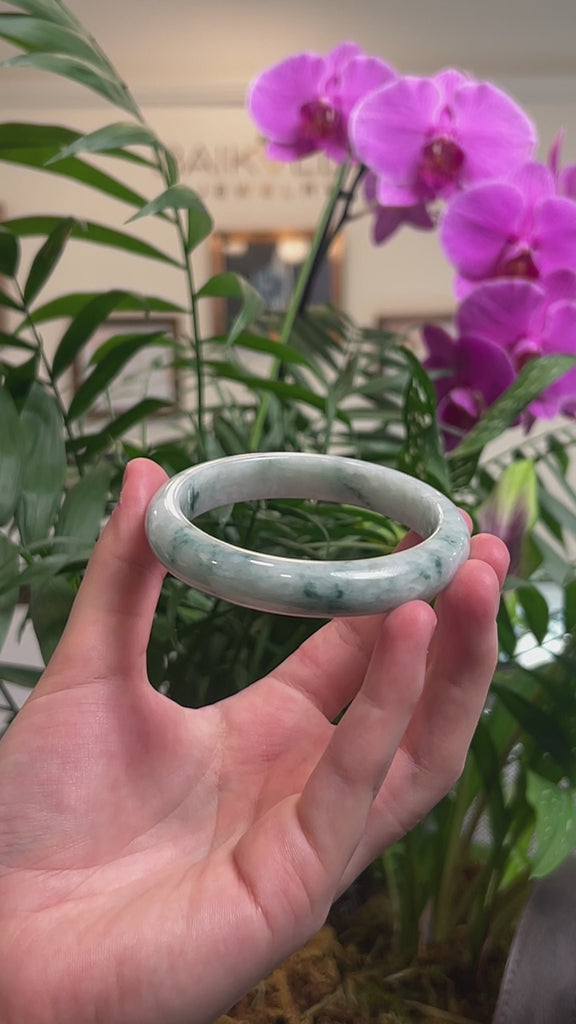 Designed in a half-round, comfort-fit style, the bangle is flat on the inside for a comfortable feel, perfect for everyday wear. Known for its durability, jadeite is also cherished as a symbol of good luck, protection, and harmony. Whether as a gift for yourself or a loved one, this jade bangle is a meaningful treasure that combines natural beauty, lasting craftsmanship, and exceptional value to cherish for years to come.