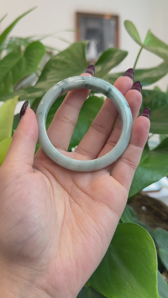 * DETAILS--- This bangle is made with genuine Burmese blue-green jadeite jade. The jade texture is smooth and translucent. The blue dark green color and transparency truly a mesmerizing combination. Just a little natural clouds line. The Classic half-round style bracelet. The whole bangle looks nice with deep blue color. It's a unique gift for yourself or your love.