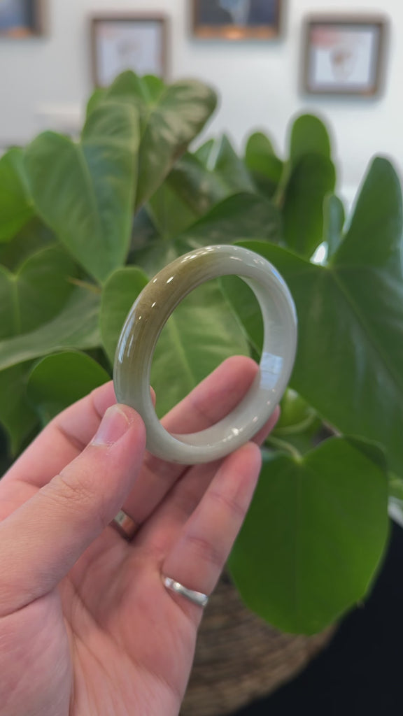 * DETAILS---This exquisite bangle is crafted from premium Burmese jadeite in a yellow. With its smooth, translucent texture and captivating color, it radiates a timeless elegance and cultural heritage. The half round comfort design enhances the jade’s natural beauty with clarity and simplicity, making this bracelet a cherished addition to any jewelry collection. Known to symbolize protection and strength, jade bangles hold deep meaning, making this piece a thoughtful, one-of-a-kind gift for yourself or someone truly special.