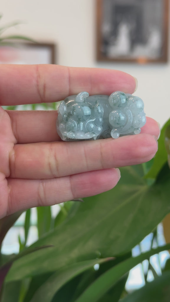 Genuine Burmese Ice Blue-Green Jadeite Jade PiXiu Pendant Necklace