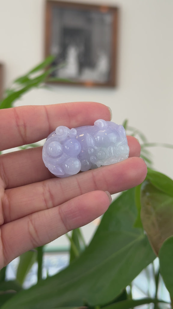 Natural Burmese Ice Lavender Green Jadeite Jade PiXiu Pendant Necklace