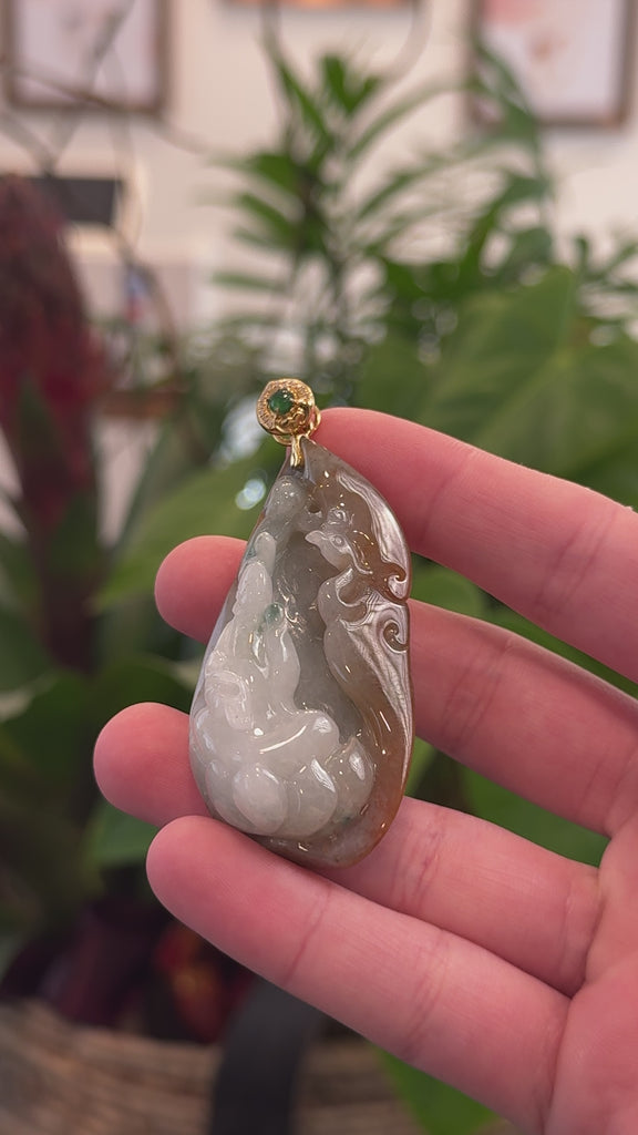 *Design concept--- Made from genuine Burmese jadeite jade, this beautiful pendant features Guanyin meditating on a lotus inside a mountain rock cave. The fine craftsmanship and unique design highlight the stunning yellow jade. A truly special piece, it is perfectly sized for both men and women.