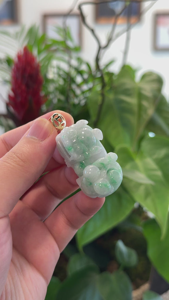 Genuine Burmese Apple Green Jadeite Jade PiXiu Pendant Necklace With 18K Gold Bail