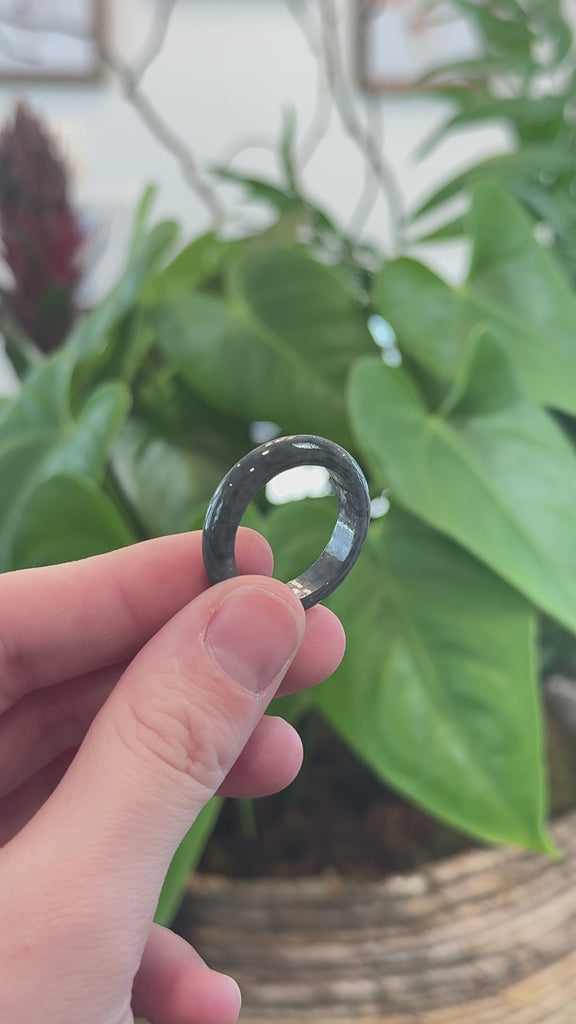 Natural Burmese Black Jadeite Jade Band Ring #12