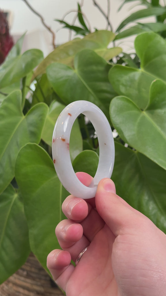 * DETAILS---This stunning jade bangle is crafted from fine Burmese jadeite with a little red and blue green hue. Its smooth texture and timeless elegance make it a true standout. The classic half-round shape ensures a comfortable fit while showcasing the natural beauty of the jade. With its unique look, the natural jade bangle is not just a piece of fine jewelry, but also a meaningful gift — perfect for yourself or someone special.